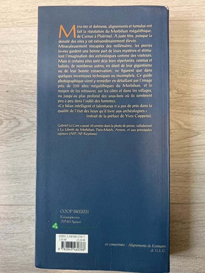 Le guide des mégalithes du Morbihan - Inventaire photographique des allées couvertes, dolmens à couloir, alignements et menhirs du Morbihan Gaby Le Cam Coop Breizh Livre presque introuvable. En bon état (la couverte porte quelques marques de pliure, une trace de frottement dans un angle, mais l'intérieur du livre est en parfait état) Envoi rapide et soigné. #livres_charlilia