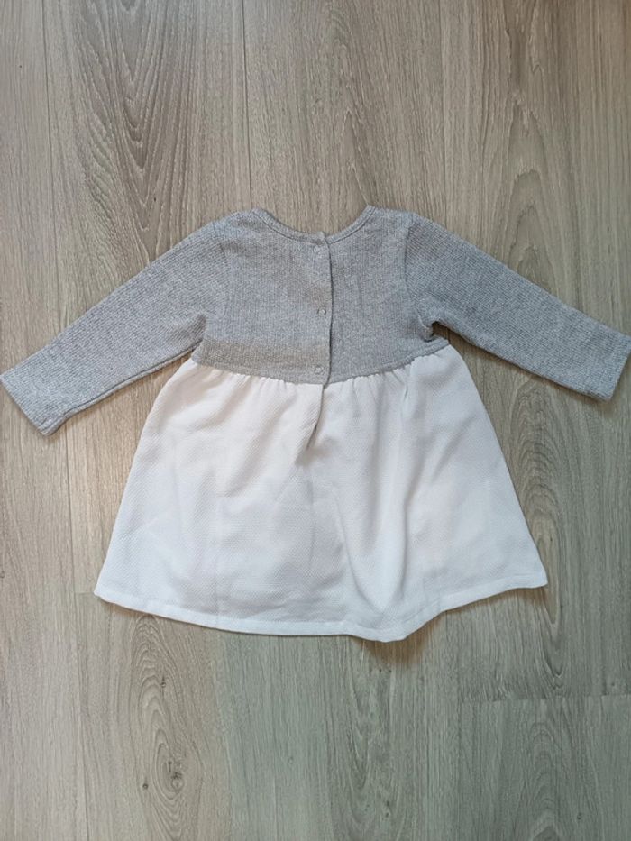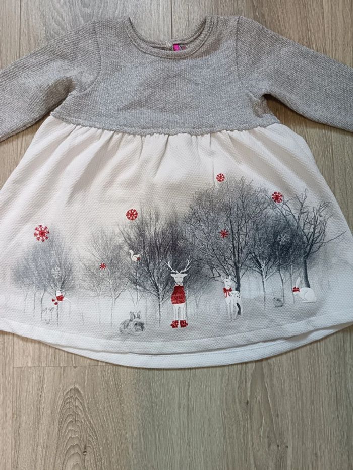 Robe de fête (Noël/réveillon) blanc gris avec cerfs flocons rouges, animaux 12 mois fille - photo numéro 2