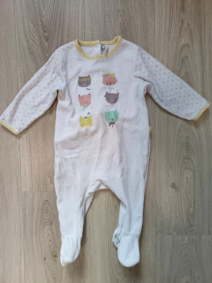 Lot pyjamas velours Orchestra motifs chats fille 12 mois - photo numéro 1