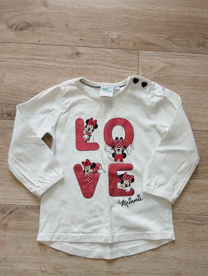 T-shirt manches longues Minnie Disney Baby blanc love fille 18 mois - photo numéro 1