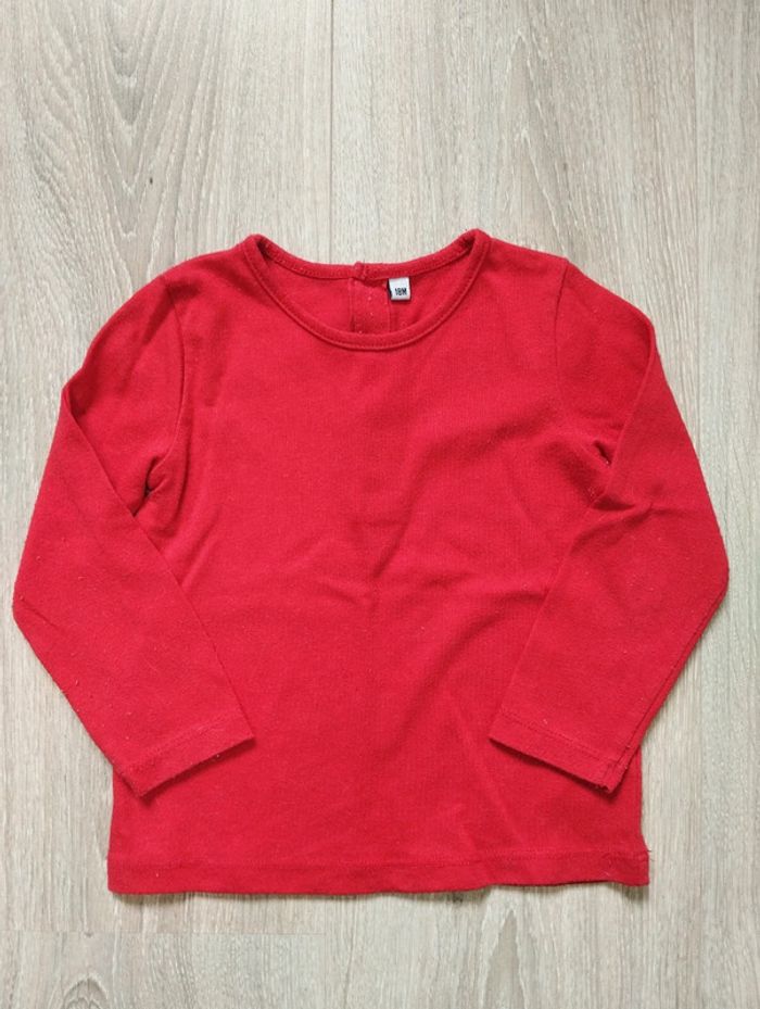 T-shirt manches longues rouge fille 18 mois - photo numéro 1