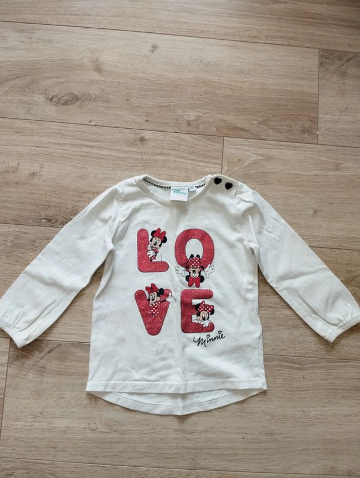 T-shirt manches longues Minnie Disney Baby blanc love fille 18 mois - photo numéro 1