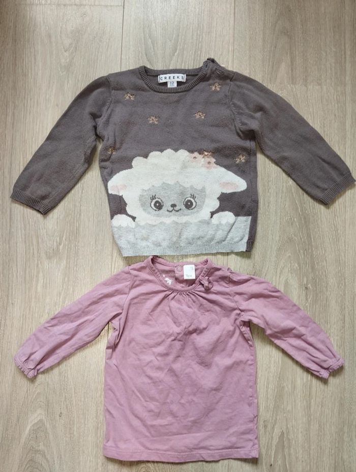 Lot pull et t-shirt manches longues fille 12 mois - photo numéro 1
