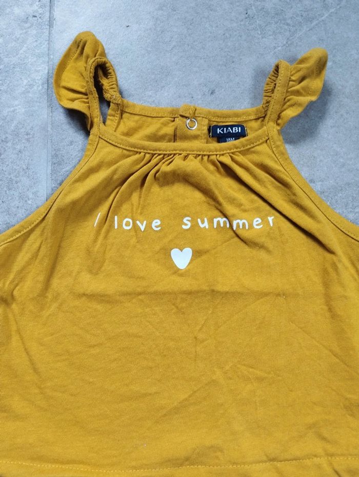 Ensemble short + débardeur fille 18 mois marque Kiabi couleur : blanc et moutarde "I love summer" À peine jauni aux fesses. Quasi invisible (voir photo) #vetementsfille18mois_charlillia
