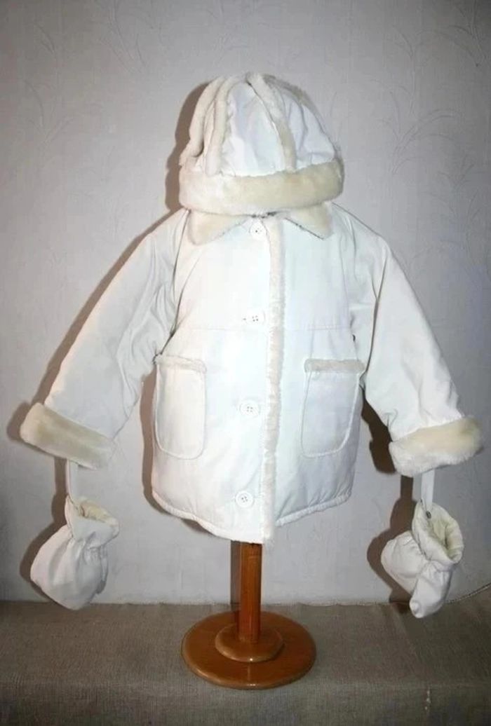 Manteau blanc cassé London fog avec ses moufles qui s'attachent et son chapeau, 400g