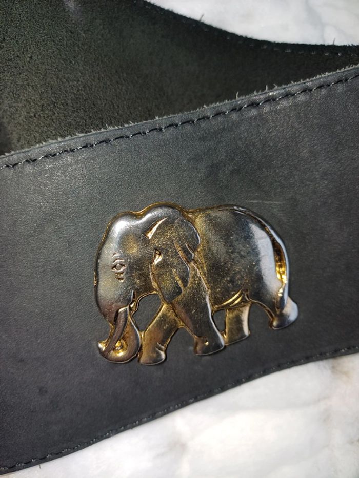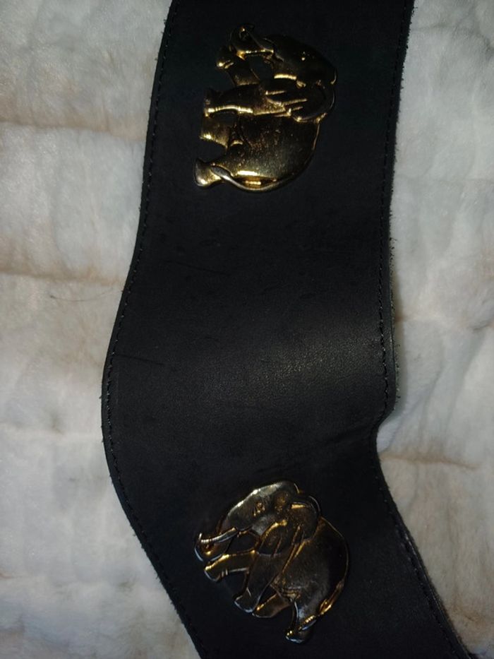 En très bon état Ceinture en croûte de cuir. Motif éléphants Fabrication française 90 cm à 95 cm #virginiemusquinaccessoires