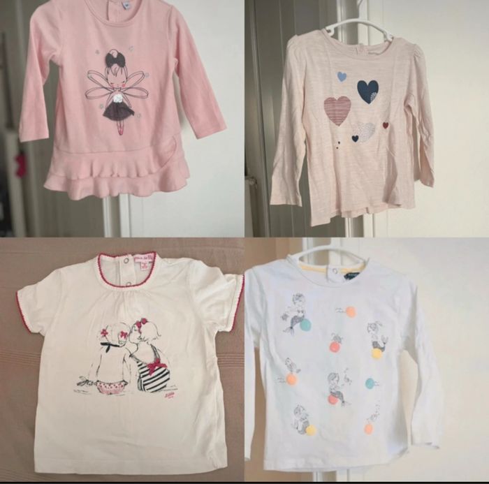 ~ Bon État 1 t-shirt manche longue danseuse étoile 18 mois sans marque. ~ 1 t-shirt manches longues bout’chou 18 mois ~ 1 t-shirt manches longues kiabi 18mois ~1 t-shirt manches courtes Grain de blé 18 mois #kiabibébé #boutchou #graindeblé #tshirtbebefille