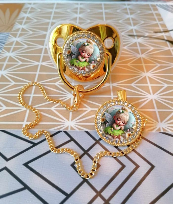 Tétine strass avec attache Couleur OR Protection tétine inclus Tétine 100% Silicone, Sans BPA. Tétine orthodontique, taille unique. Neuf emballé