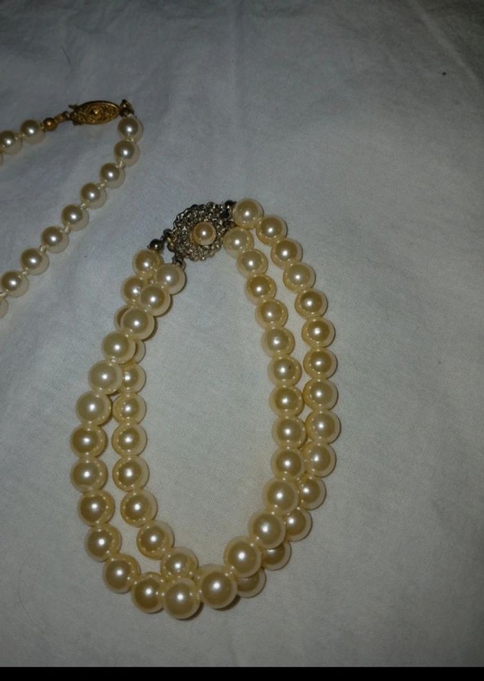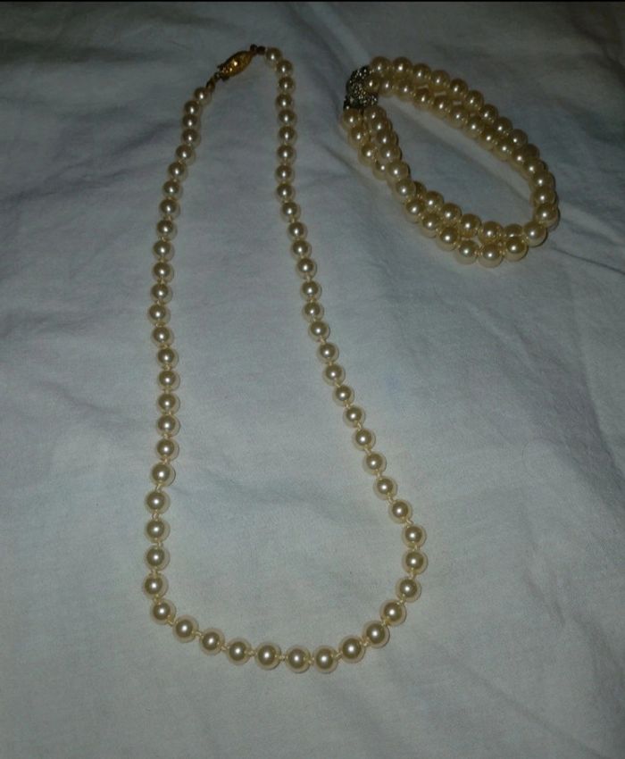 Collier de perle avec fermoir + bracelet de perle avec fermoir Couleur blanc cassé #caisse11jennyjen