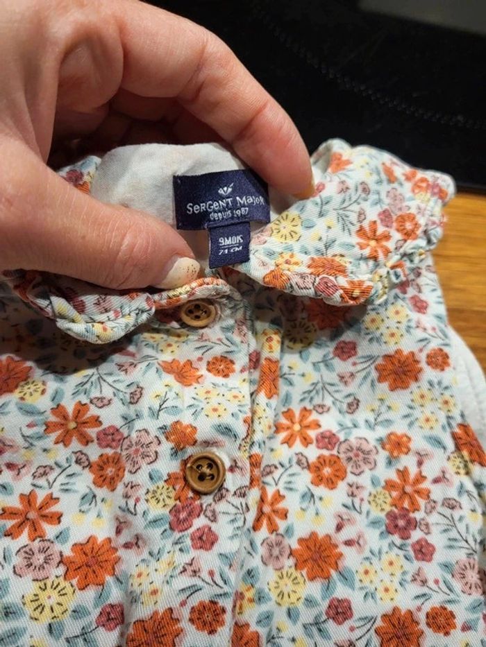 Salopette fleurie matière souple 9 mois sergent major très bon état Si vous souhaitez voir tous mes vêtements en 9 mois cliquez sur le lien : #kellykiwi16_fille_9mois