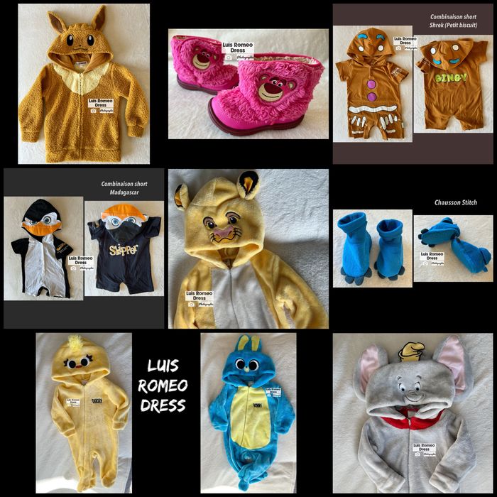 Bonjour, Un exemple de ce que je vends N’hésitez pas à m’ajouter sur mon fb :  Luis Romeo Dress pour voir les vêtements Pleins de déguisements Disney Store, chaussons, chaussures, combinaisons bébé fille et garçon qui vont trop petits maintenant à mes enfants