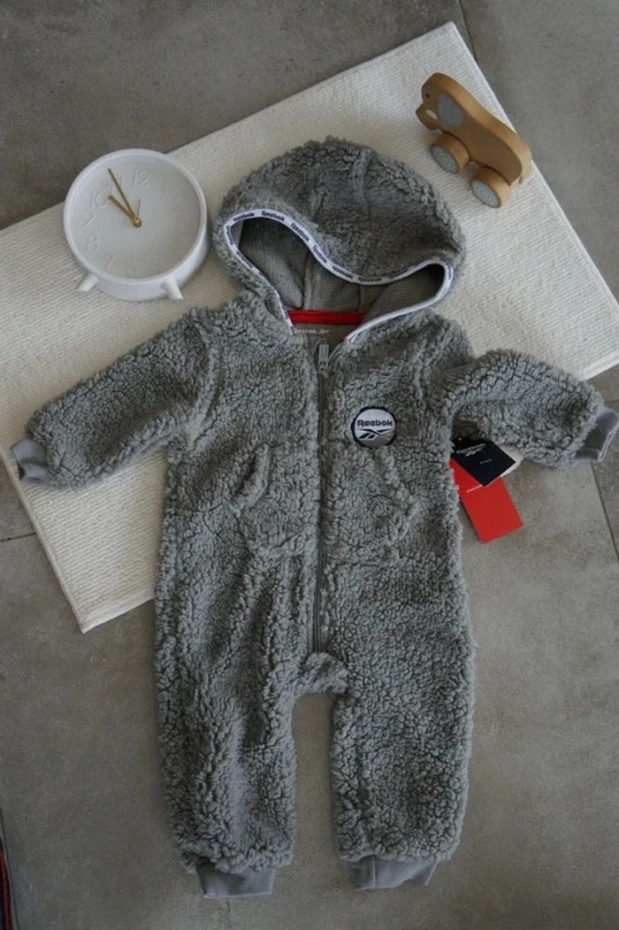 Combinaison toute douce et très chaude 6 / 9 mois Parfaite pour les temps actuels Neuve avec étiquette car jamais porté Extrémités des bras et des jambes ont un élastique pour bien serré. Prix neuf 29.99€ 20% de remise dès 5 articles #natasha514blouson6mois #reebok