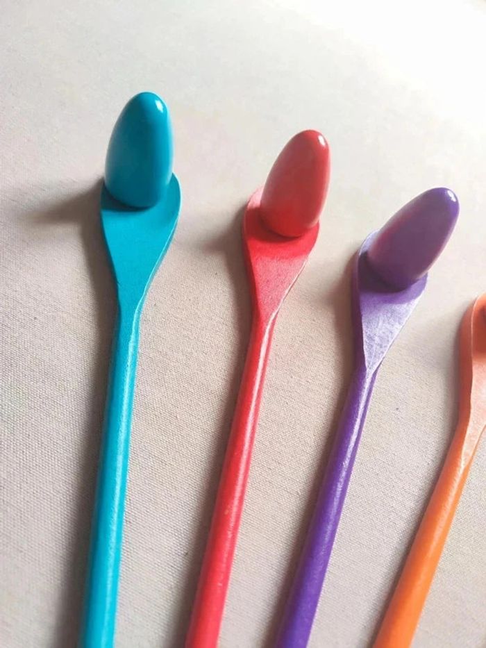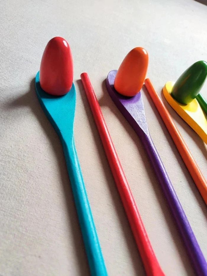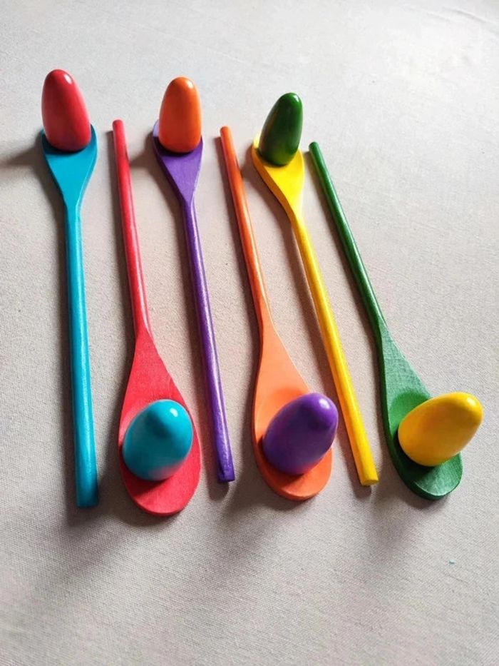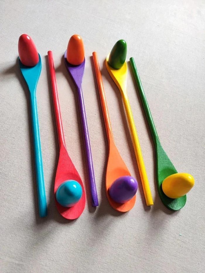 📍Jeu de la course à l'œuf en bois. 📍Taille des cuillères : 30,5 x 4 cm 📍Tailles des œufs : 3,2 x 5,5 cm 📍Neuf. 👉Pour trouver d'autres activités c'est par ici : 🔎#elisabethdesignJeuenBois 📫⏳ Envoi rapide et soigné le jour même de l'achat dans la mesure du possible! 🤝 Frais de port ajusté au plus bas.