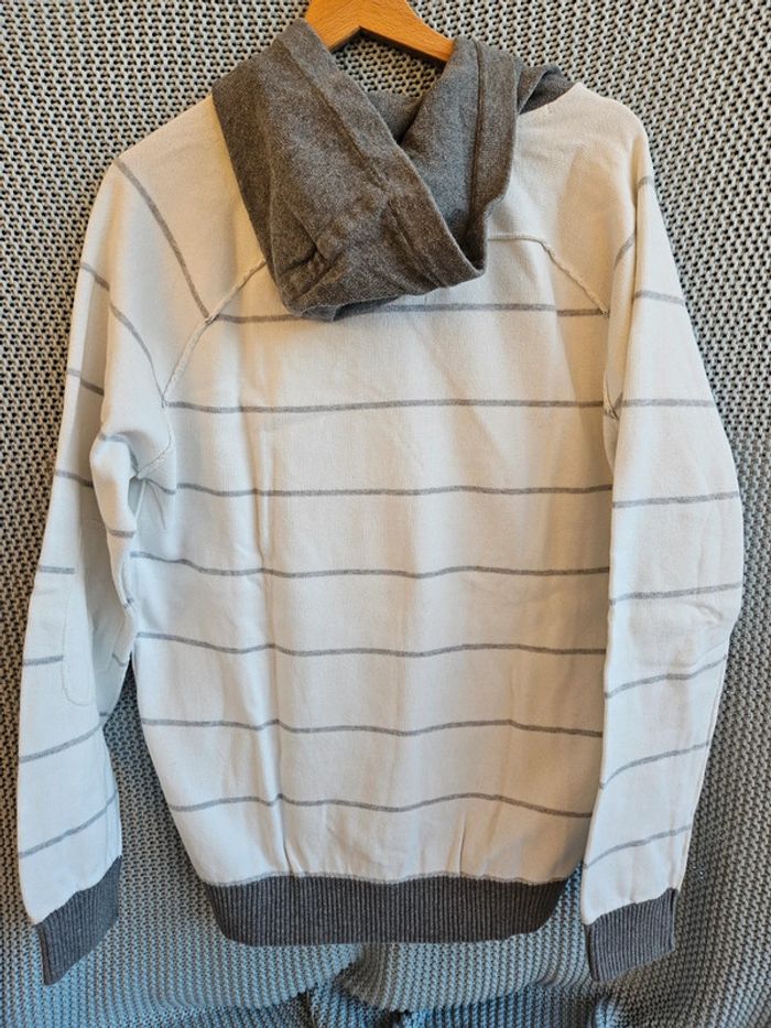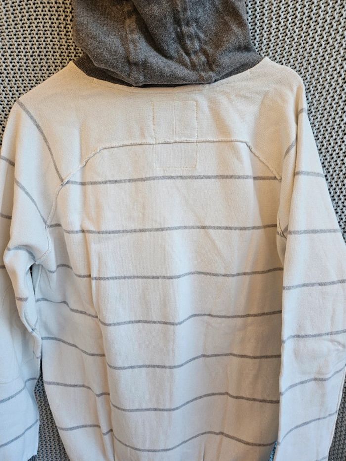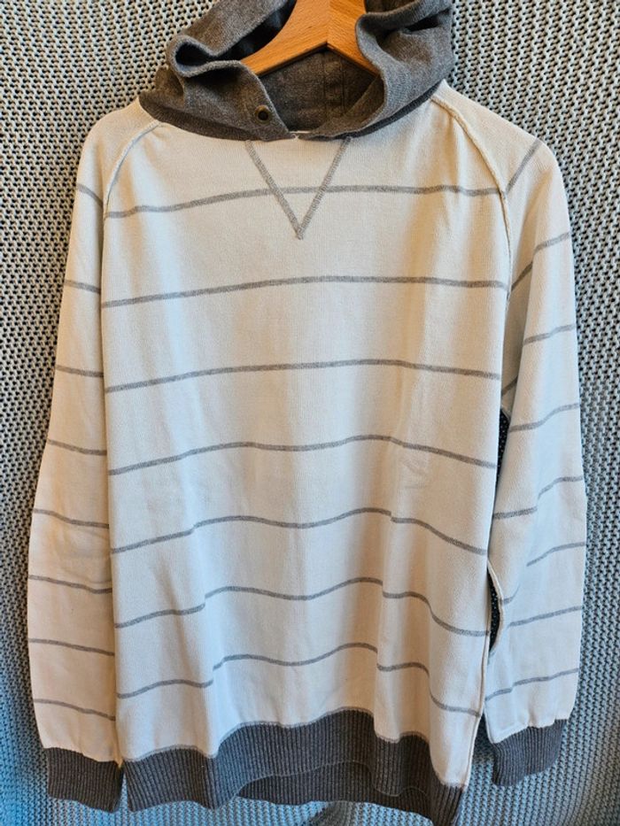 Pull à capuche. Blanc à rayures et capuche grises. Marque Jules. Taille XL. #mimidachomme #mimidachommeXL