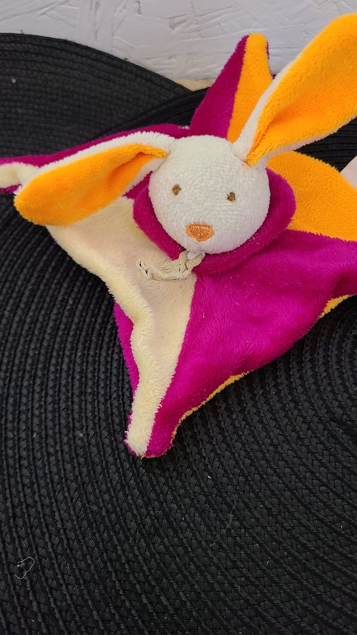 Mini doudou plat lapin BABY NAT orange violet - photo numéro 1