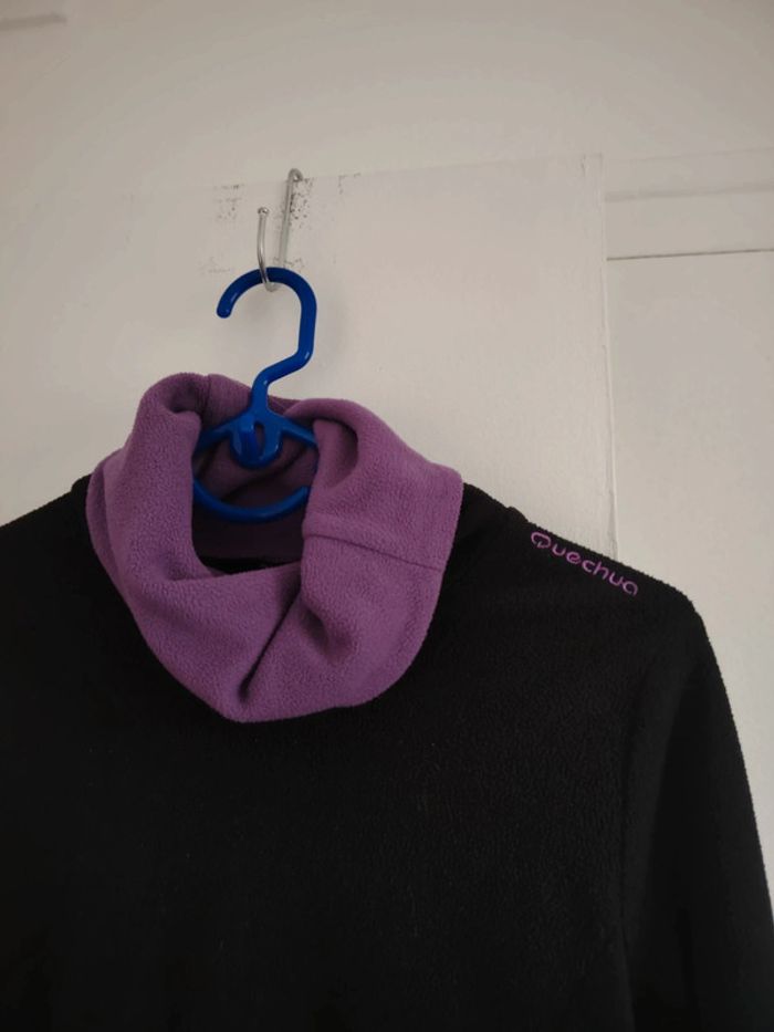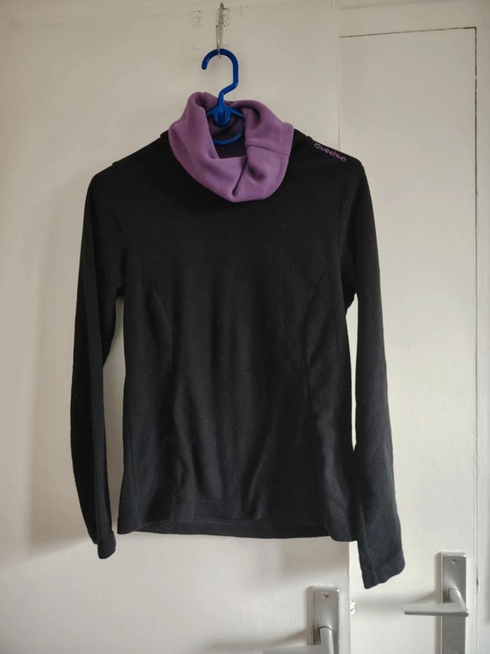 #meganeayrontrentequatre Pull noir et violet marque quechua taille 34 Étiquette de taille coupe