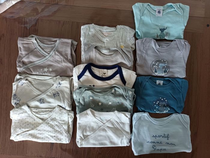 Lot de 12 bodies manches longues dont 3 petits bateaux impeccables Puis plusieurs marques : Kiabi, Absorba... État général : 2 en bon état, tout le reste en très bon état !