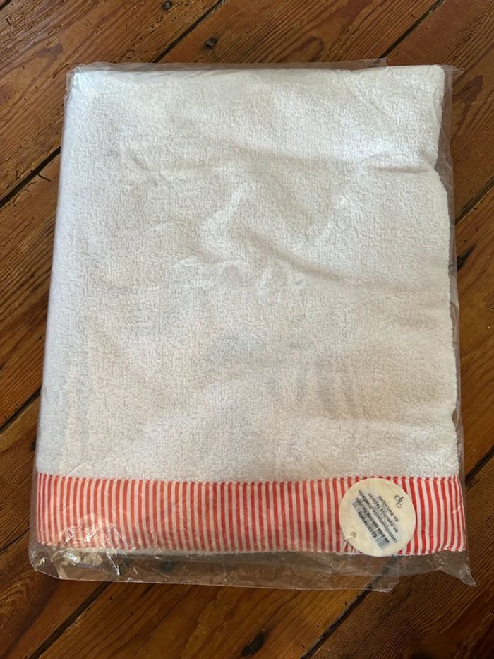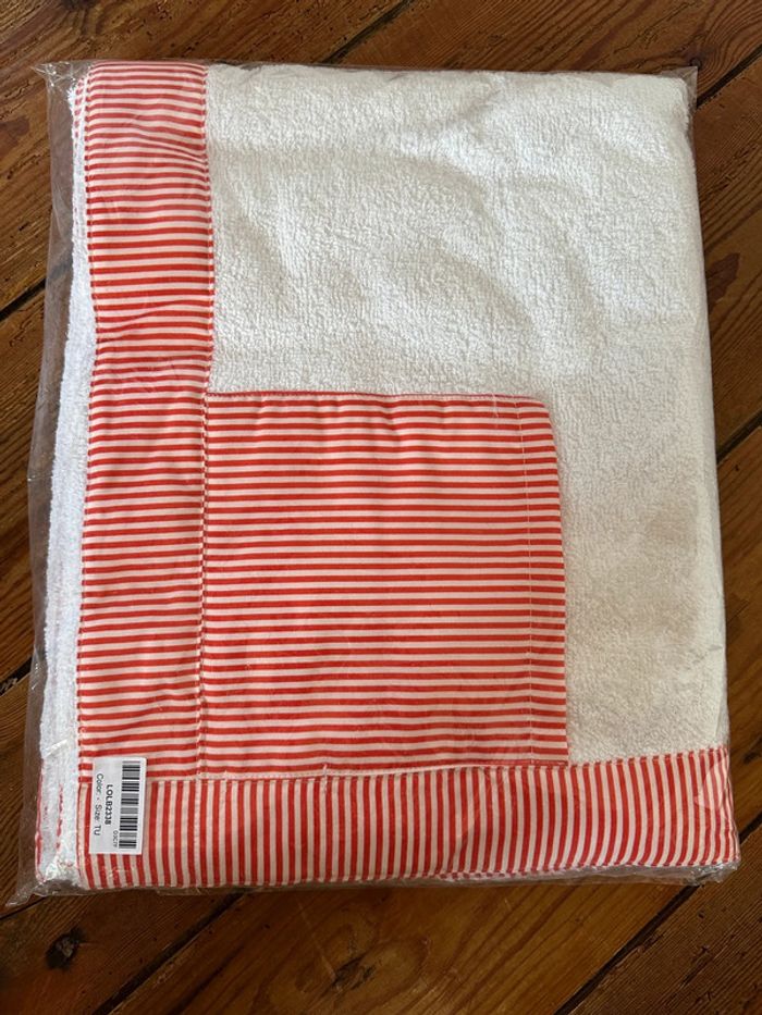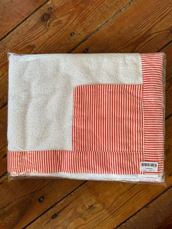 NEUF Lola Palacios (Little Celebs) Drap de douche plage bain sortie bébé blanc rouge rayé 120x74cm - photo numéro 1