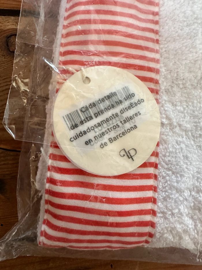 NEUF Lola Palacios (Little Celebs) Drap de douche plage bain sortie bébé blanc rouge rayé 120x74cm - photo numéro 5