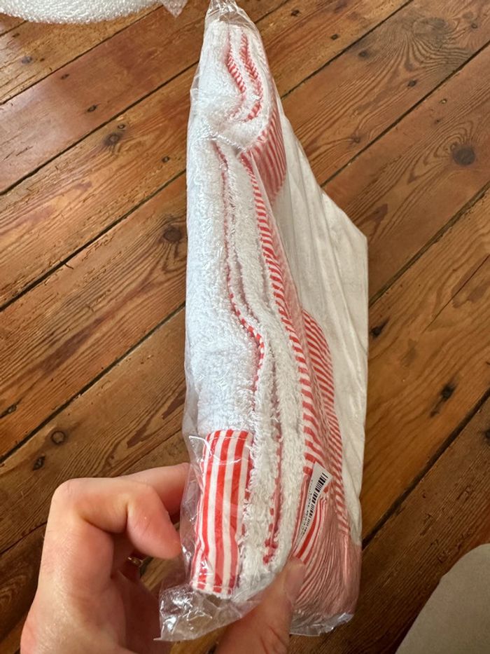 NEUF Lola Palacios (Little Celebs) Drap de douche plage bain sortie bébé blanc rouge rayé 120x74cm - photo numéro 4