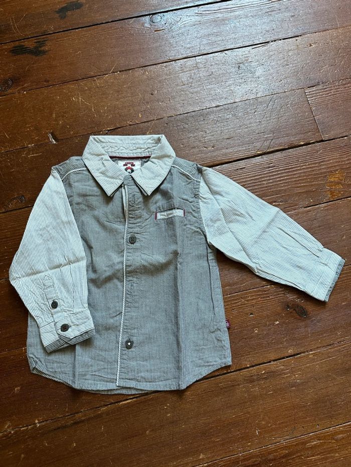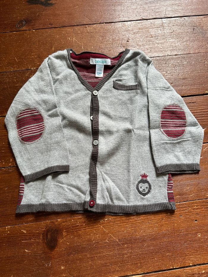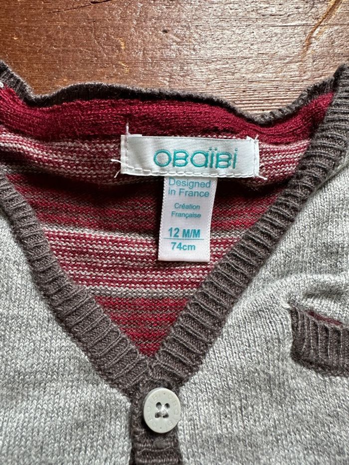 Ensemble Obaïbi gilet, pantalon, chemise gris bordeaux 12 mois