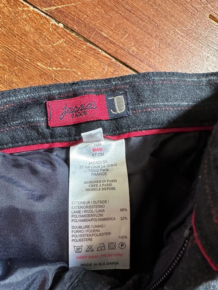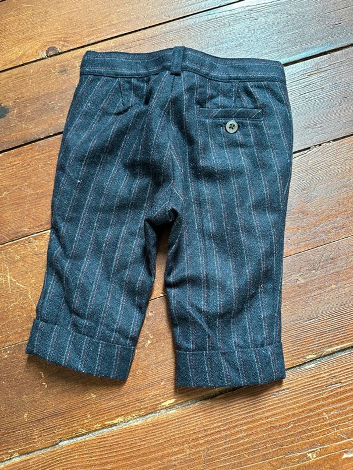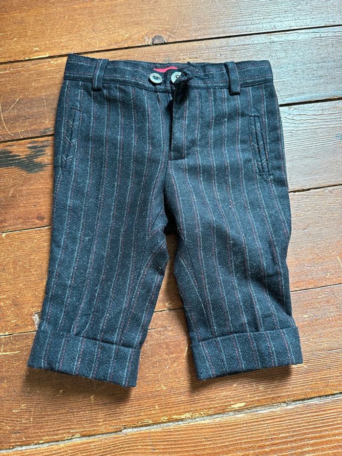 Pantalon de costume Jacadi noir avec de fines rayures rouges. Taille 6 mois. Excellent état. Envoi rapide et soigné.