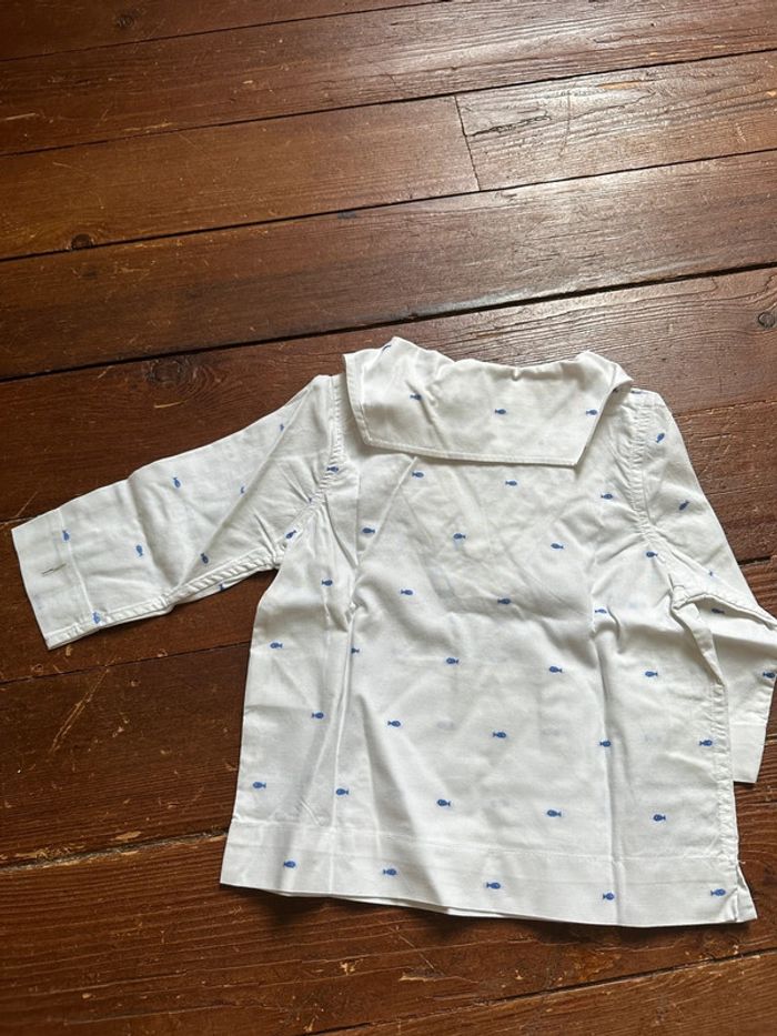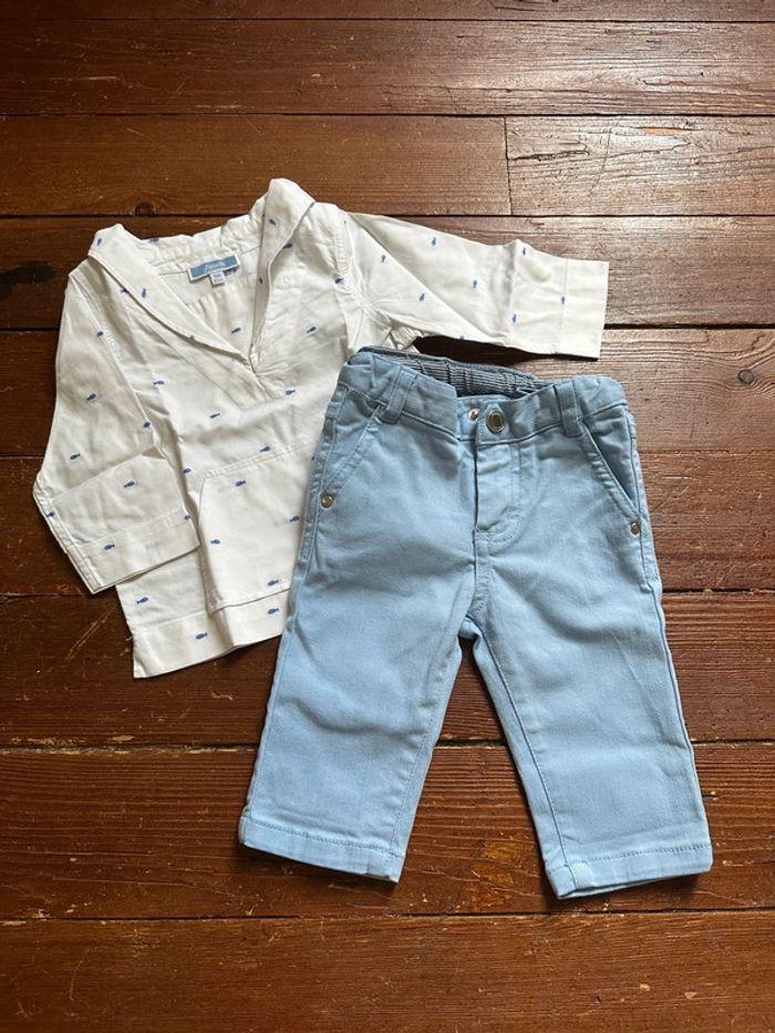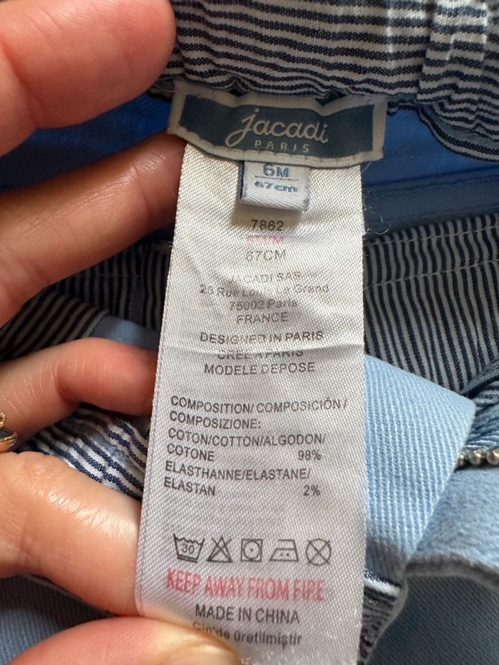 Ensemble Jacadi pantalon ciel+ marinière blanche 6 mois
