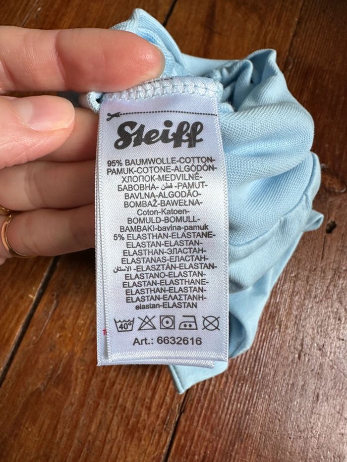 Pantalon Steiff bleu layette taille 2 mois (56 cms). Très bon état. Envoi rapide et soigné.