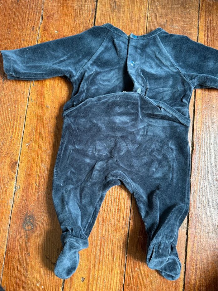 Pyjama Natalys velours bleu marine taille 1 mois (54 cms). Très bon état. Envoi rapide et soigné.