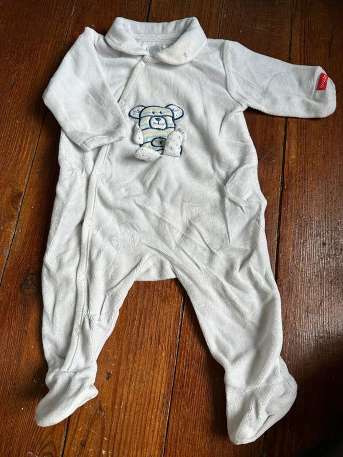 Pyjama blanc taille 3 mois. Toucher velours. Envoi rapide et soigné.