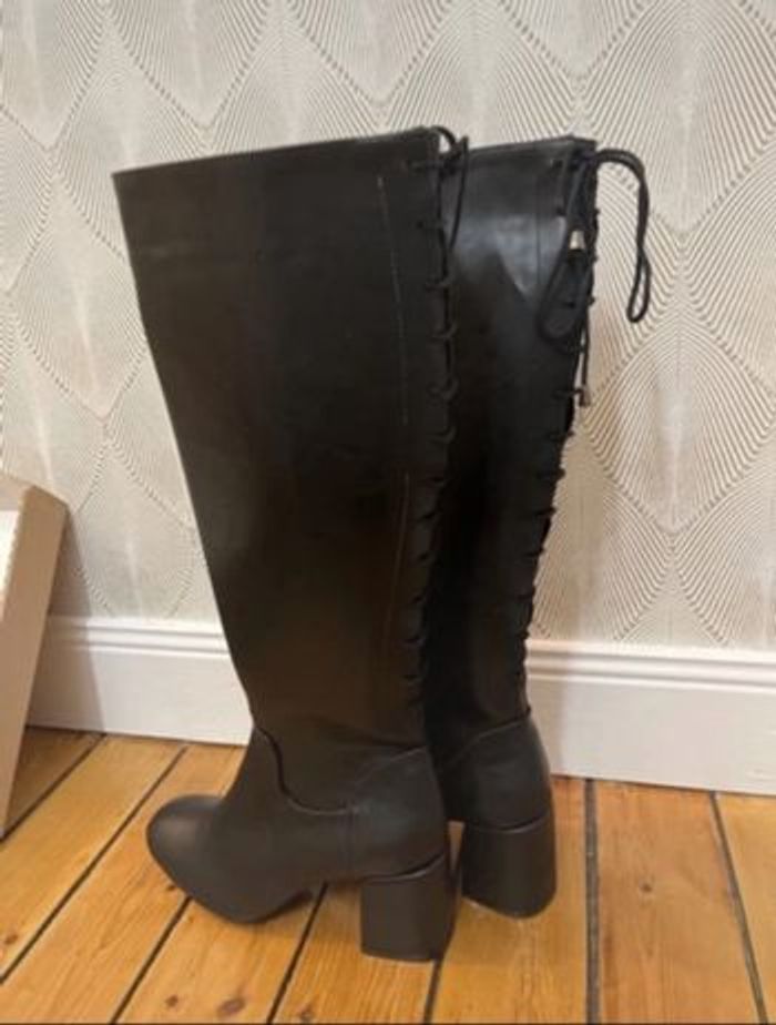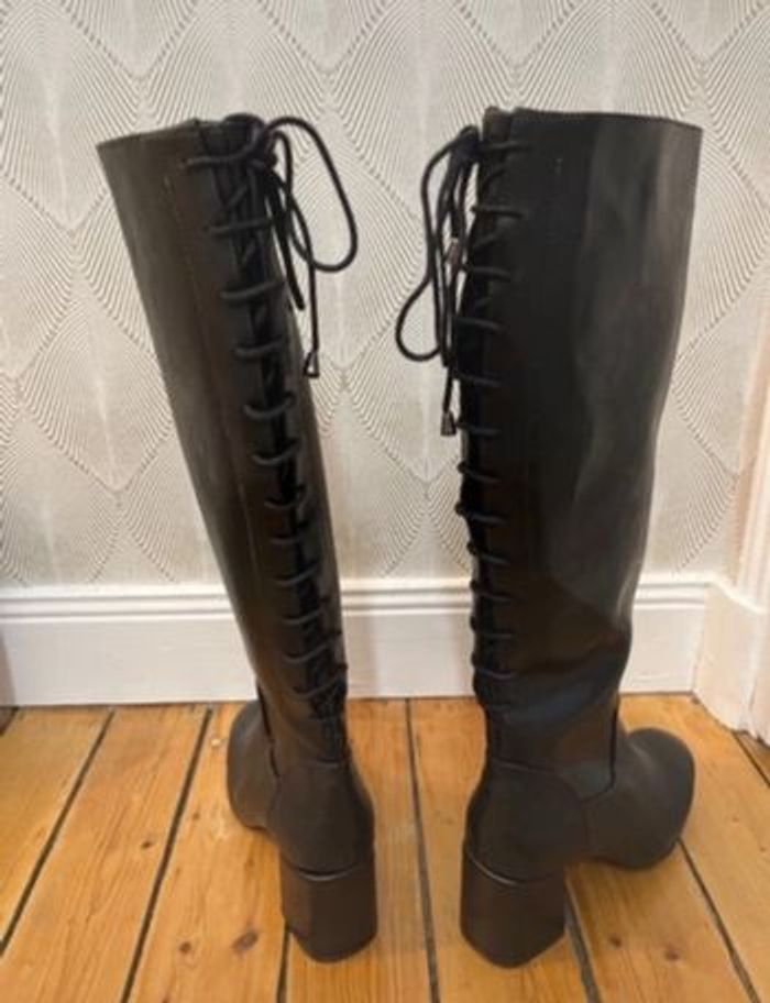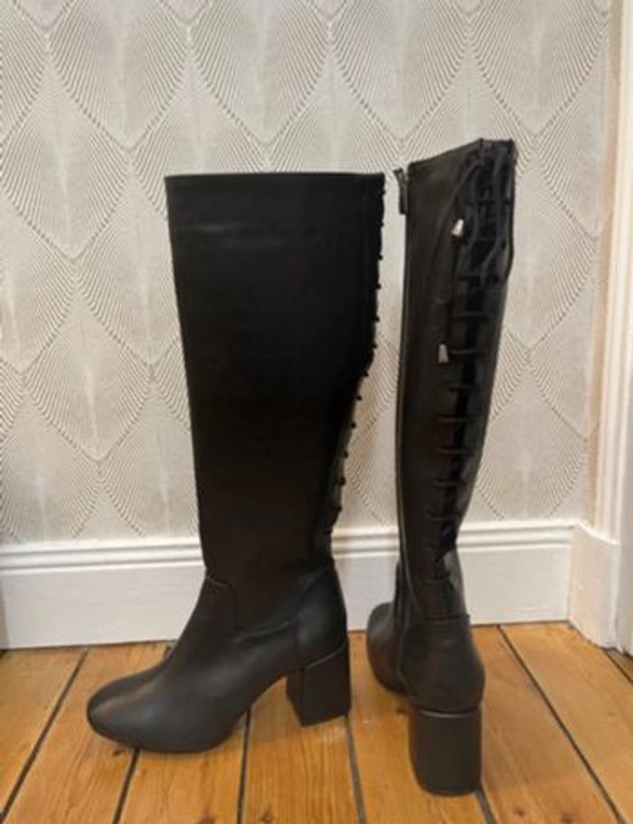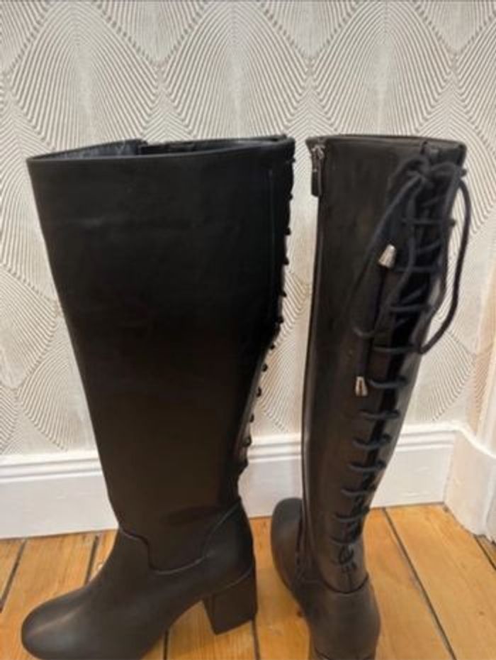 Avec lacets derrière pour régler en fonction du tour de jambe
