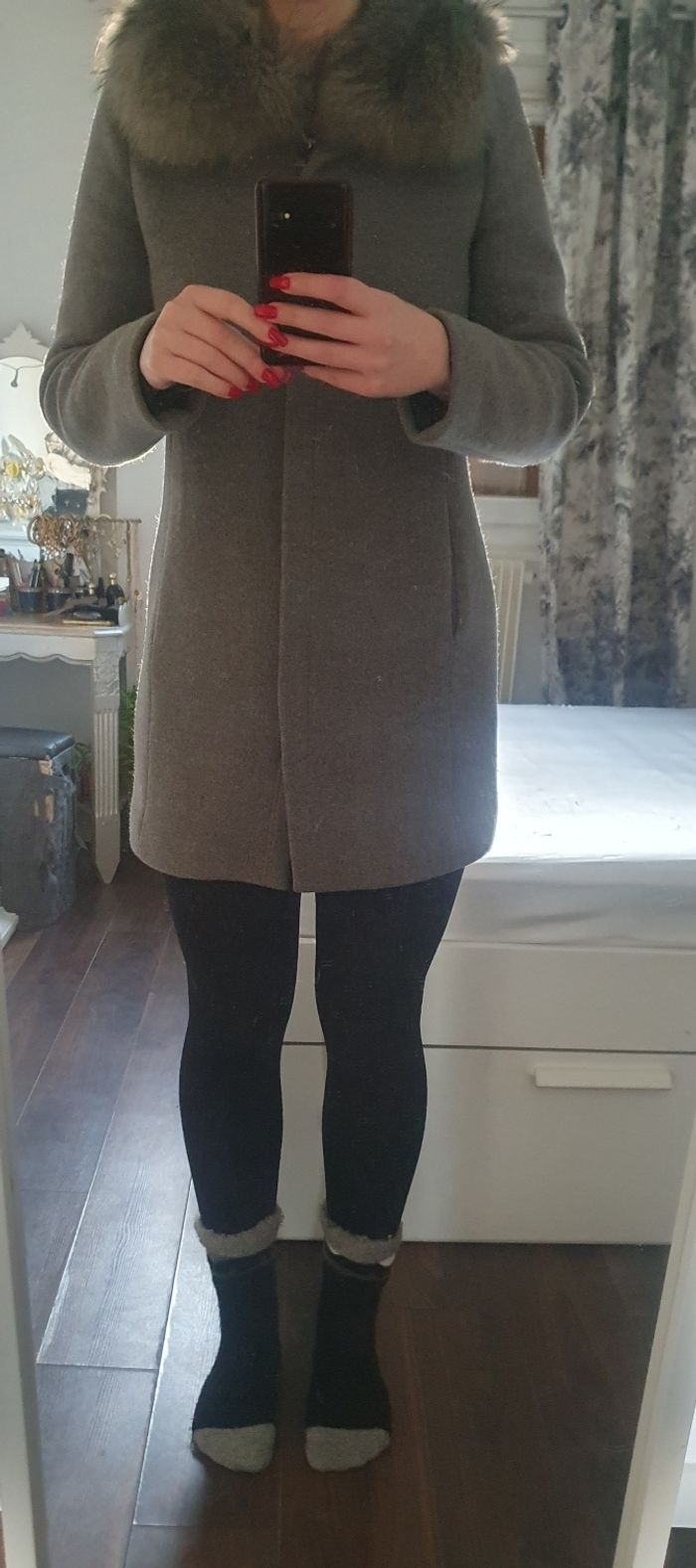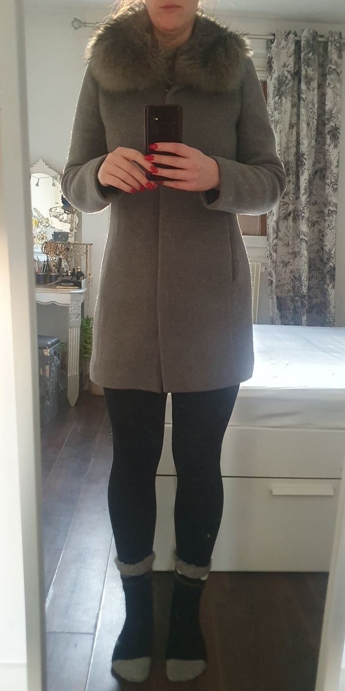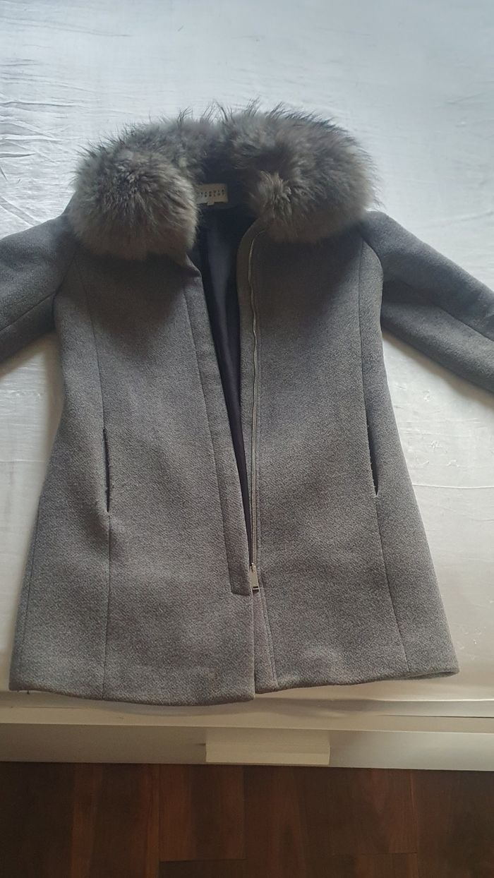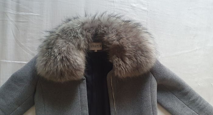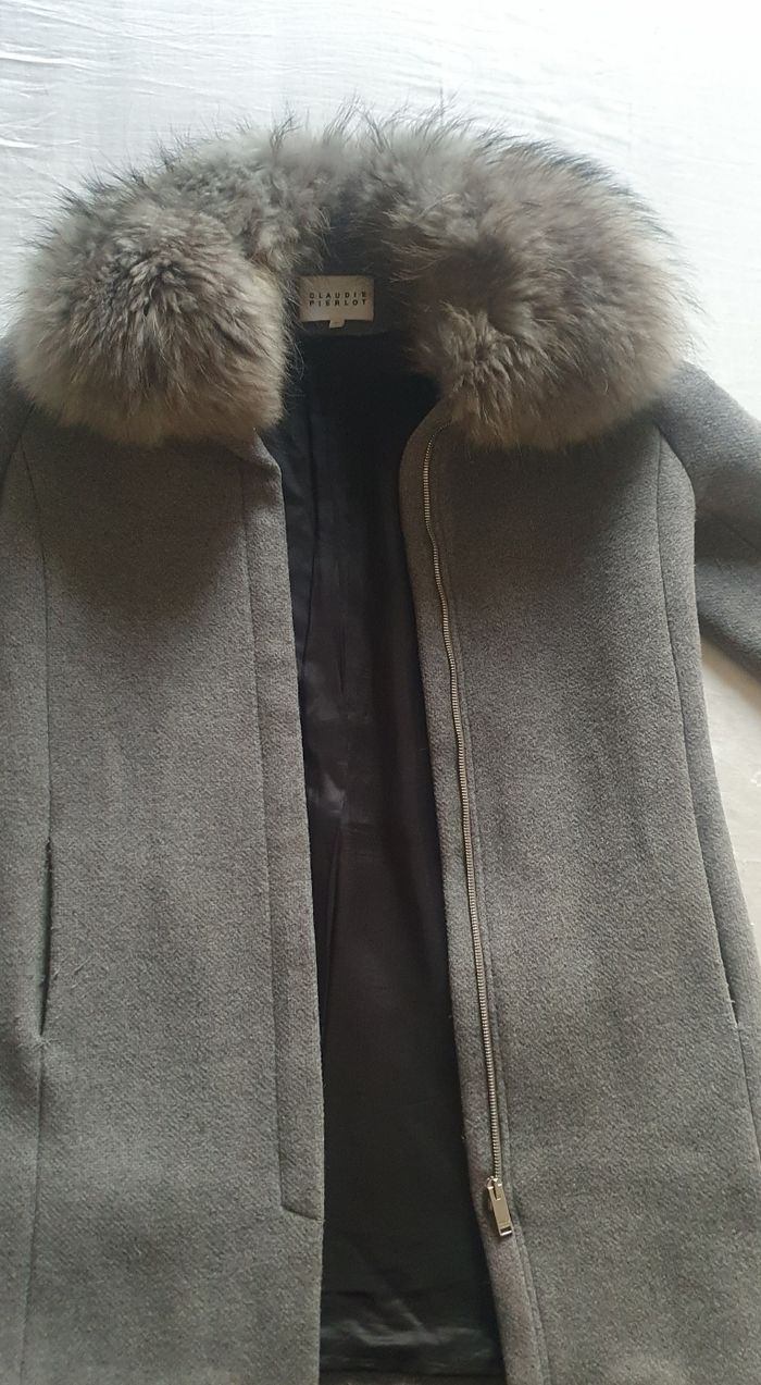 Manteau coupe droite de marque Claudie Pierlot Très bon état Laine et fourrure en raton laveur Couleur grise