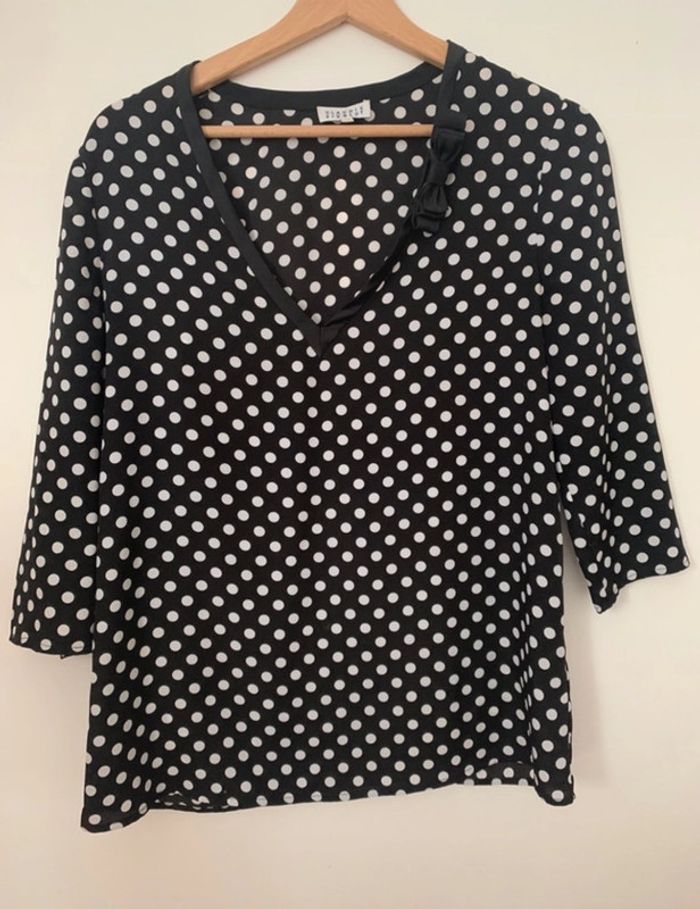 Blouse intemporelle noire à pois blanc Très bon état. #blousefemme38 #sandro #claudiepierlot #maje #zara #H&M