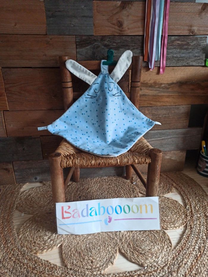 Doudou lapin CAD distri Center Bleu blancétoiles Très bon état Attention je n'ai plus mon étiquette N'hésitez pas à faire un lot pour économiser sur les frais de port Pour voir les autres articles de la même catégorie: #badaboooom_doudous