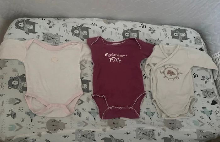 Taille 3 mois Taille 3 mois En bon état Marque diverses Le 3 eme a un défaut il manque un bouton à l’intérieur mais cela n’empêche pas l’utilisation du body #Laetitialuna51360_3moisbody