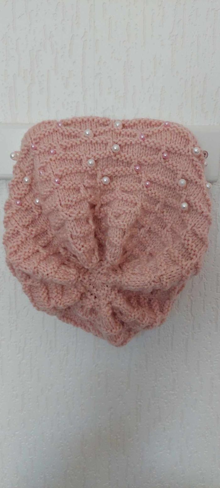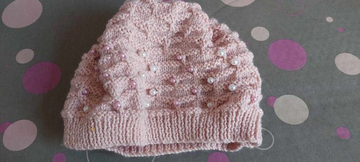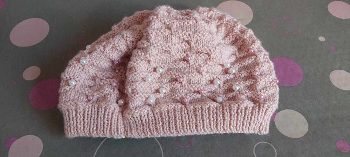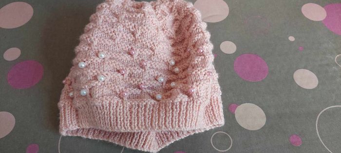 Joli bonnet hiver femme vieux rose à perles Lneuf jamais porté