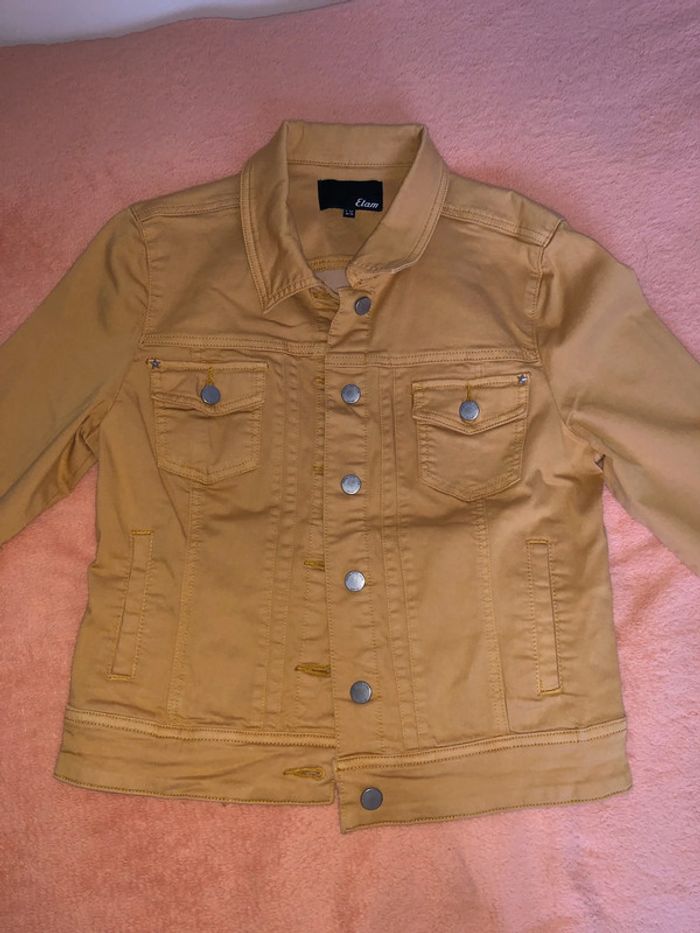 Veste courte en jean jaune moutarde 🌞 • 🌟 Marque : Etam • 🏷️ Taille : 42 (UK 14) • 🎨 Couleur : Jaune moutarde, parfaite pour illuminer vos tenues. • 🧵 Composition : o 54 % coton, 27 % polyester, 17 % viscose, 2 % élasthanne. o Doublure des poches : 55 % polyester, 45 % coton. • 👚 Style : Coupe classique en jean avec col, poches boutonnées et détails en métal argenté. Taches noires sur les 2 dernières photos 💡 Style : À associer avec un pantalon blanc ou un jean pour un look estival lumineux ! 👖✨