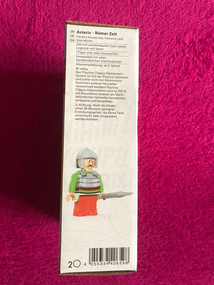 Stimule la créativité, l'Imagination et l'interaction - Tente à toit amovible ainsi que légionnaire et son javelot - 1 figurine et de nombreux accessoires - Compatible avec tous les blocs de construction standards - Age recommandé : dès 5 ans - 91 pièces Le système de blocs de construction Playtive Clippy fait partie de l'univers de jeu Playtive et ne doit pas être confondu avec d'autres systèmes de blocs de construction ! Les blocs de construction Playtive Clippy sont compatibles à 100% avec les blocs de construction commercialisés par d'autres tabricants. Attention. Ne convient pas aux enfants de moins de 36 mois. Risque d'étouffement en raison de petites pièces pouvant être avalées ou inhalées.