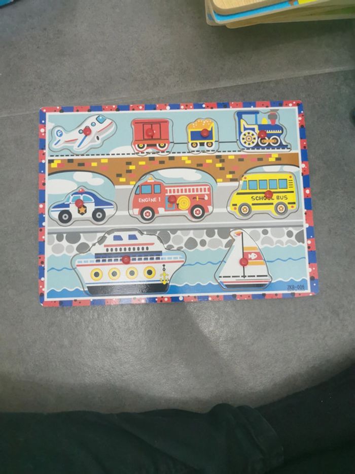 Puzzle encastrement de véhicules en bois. En excellent état.