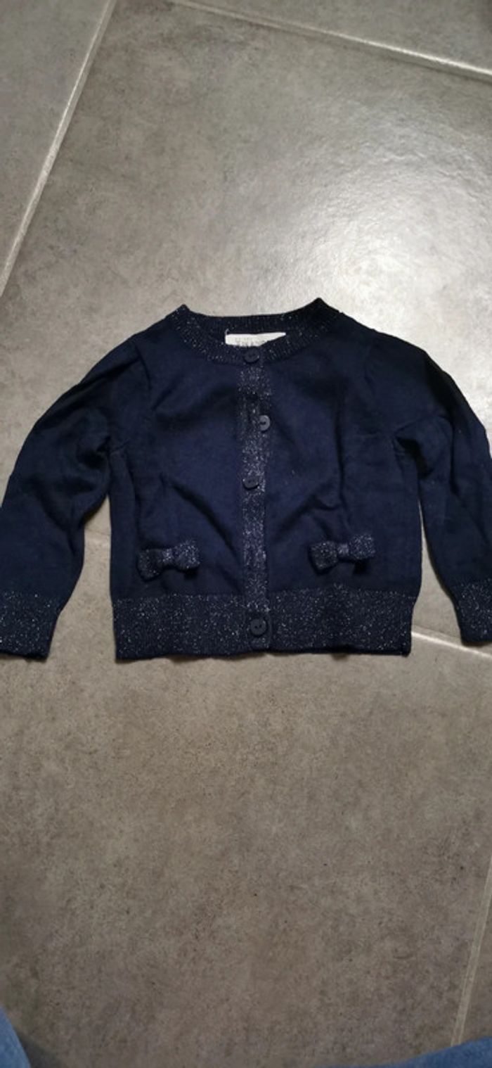 Gilet bleu foncé, 12 mois. Jean bourget. Porte une fois donc excellent état