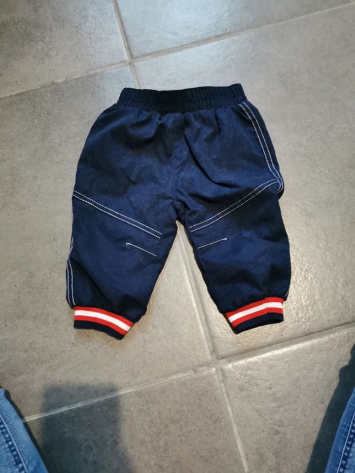 Pantalon de jogging en 6 mois bleu et rouge. En excellent état.