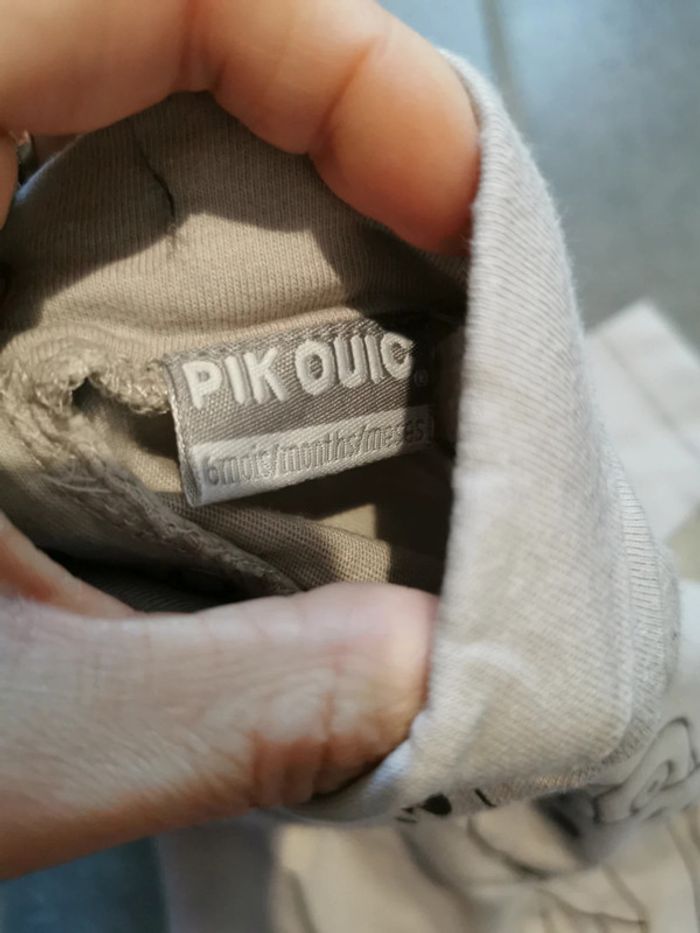Tee-shirt manches longues col roule 6 mois marque pik ouic. Gris en très bon état