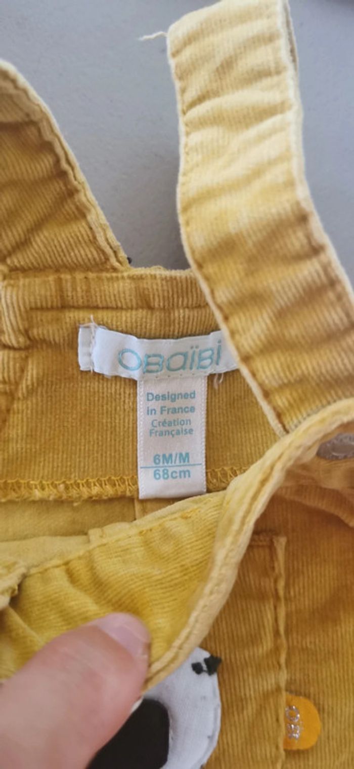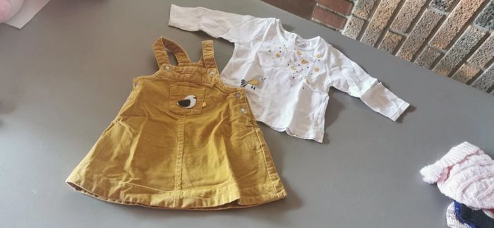 Ensemble Robe et Tee-shirt. Marque obaïbi. Moutarde et blanc. 6 mois. En très bon état