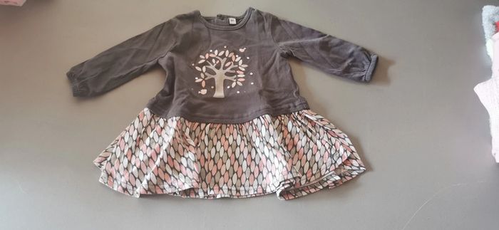 Robe manches longues en coton. 6 mois. Bon état. Rose et grise.
