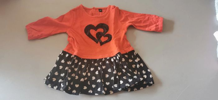 Robe manches longues. En coton. 6 mois. Bleu et rouge