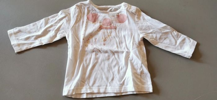 Tee-shirt manches longues. Blanc avec corps de danseuse rose. En bon état. 3 mois.