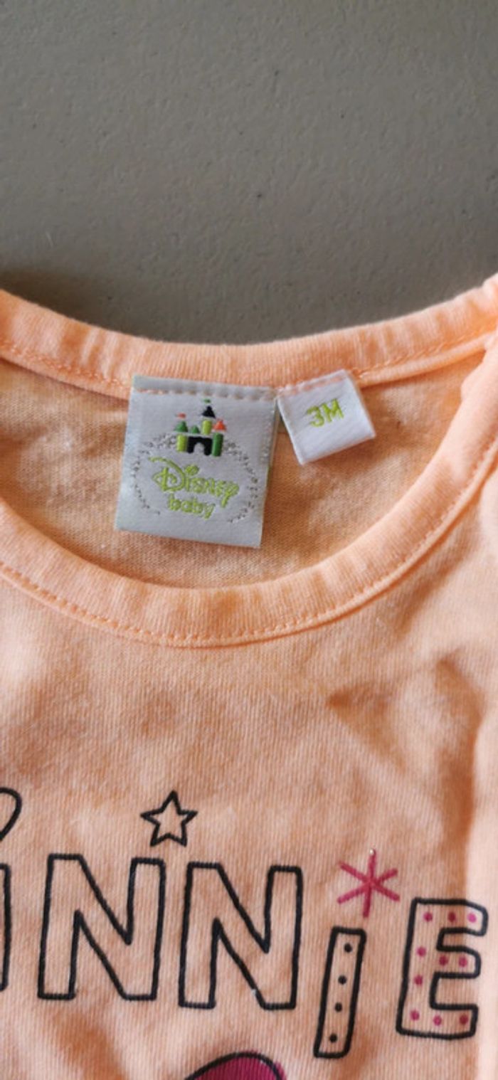 Tee-shirt manches courtes. Minnie. Orange clair. 3 mois.