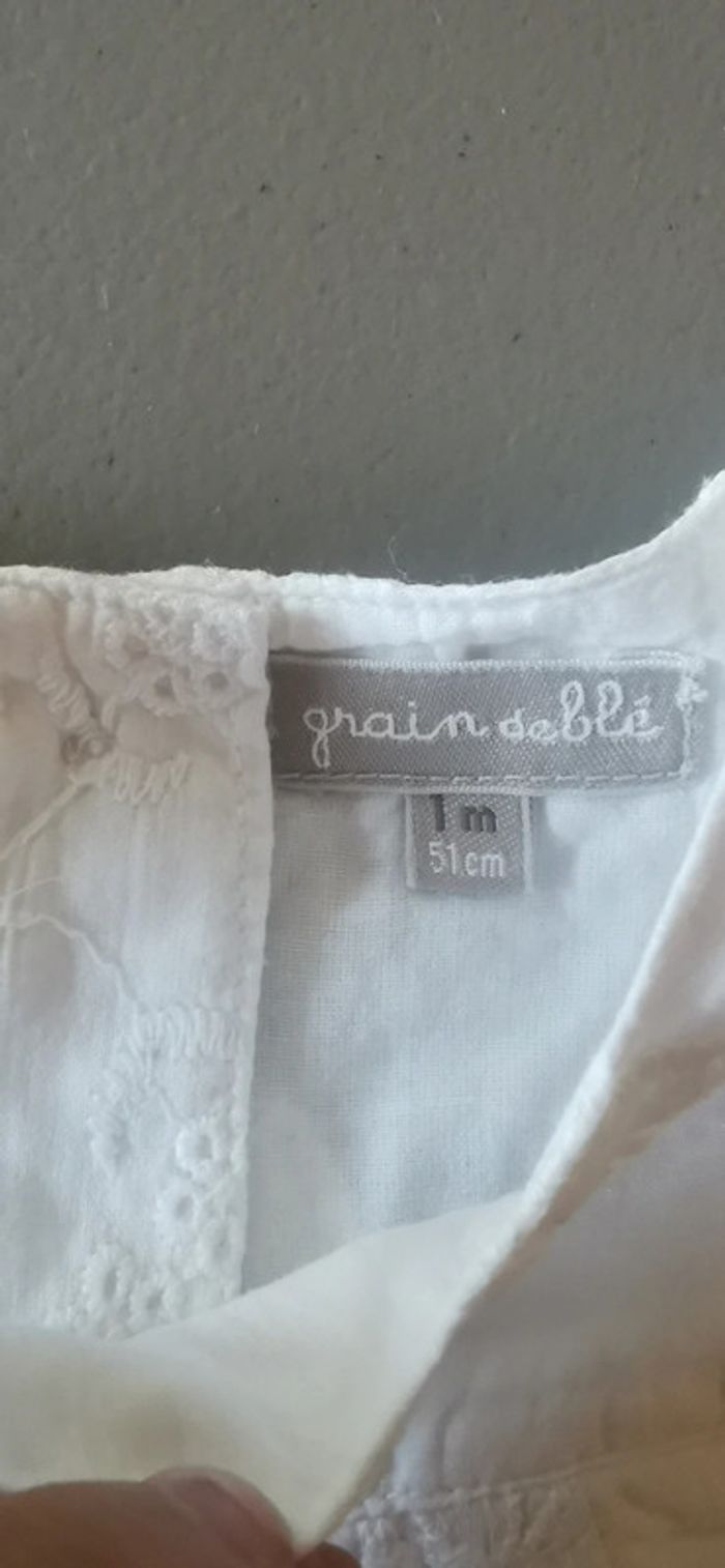 Robe en broderie anglaise, blanche. Marque grand de blé. Taille 1 mois