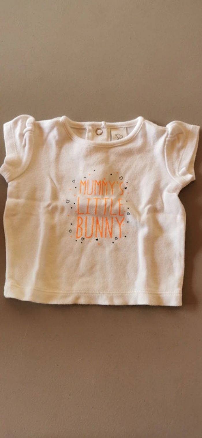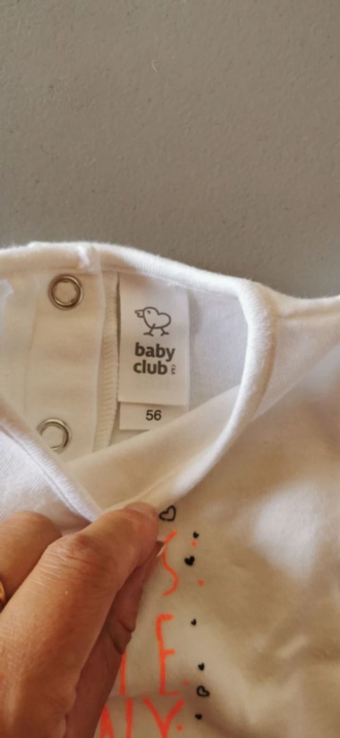 Tee-shirt manches courtes, blanc. Taille 1 mois. Marque baby club (C&A). En excellent état