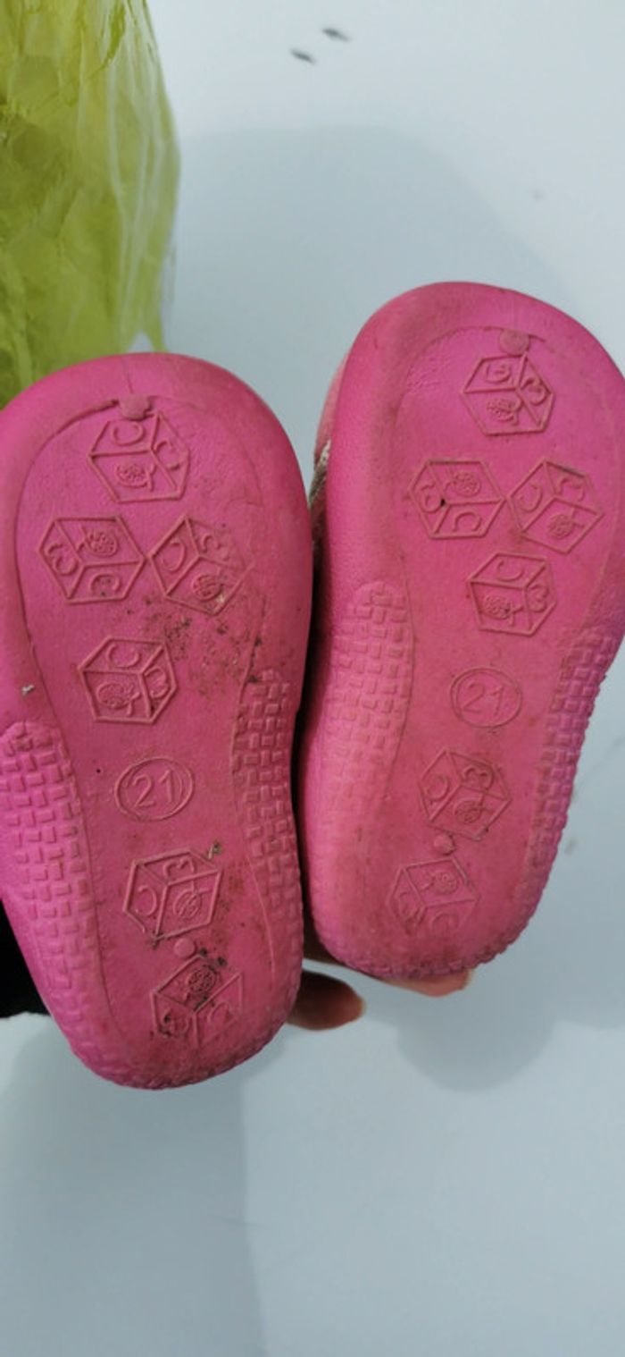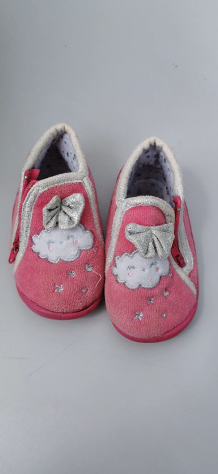 Chaussons roses avec dessin de nuage. Taille 21. Achetés à leclerc.